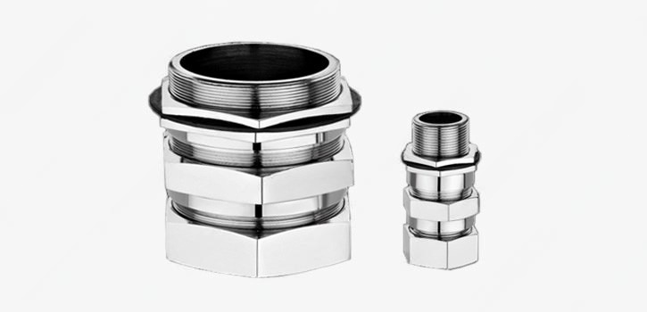 Flame Proof Double Compression Glands are generally used in hydrogen Gas/vapors area (for gas group IIC) as well as in normal climatic conditions also which are weather proof, water proof and dust proof (IP-65) which can be used in Hazardous climatic condition. Also when protected by PVC shrouds it can be used in corrosive Atmosphere. These glands are suitable for all types of cables like Armour, Unarmour, Power, Instrumention, XLPE etc.
